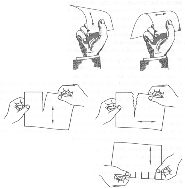Rysunek. Umiejętne i wadliwe wykorzystanie ułożenia włókien papieru.